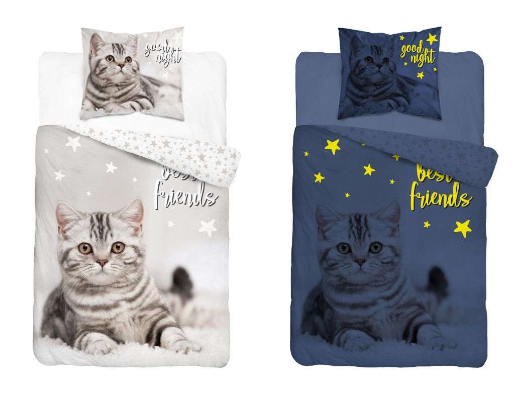 DETEXPOL Svietiace obliečky Best Friends Mačiatko 140×200, 70×80 cm
