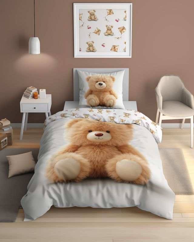 • Povlečenie z jemnej bavlny s motívom medvedíka, ktoré v noci príjemne svieti – ideálne na podporu pokojných chvíľ pred spaním.