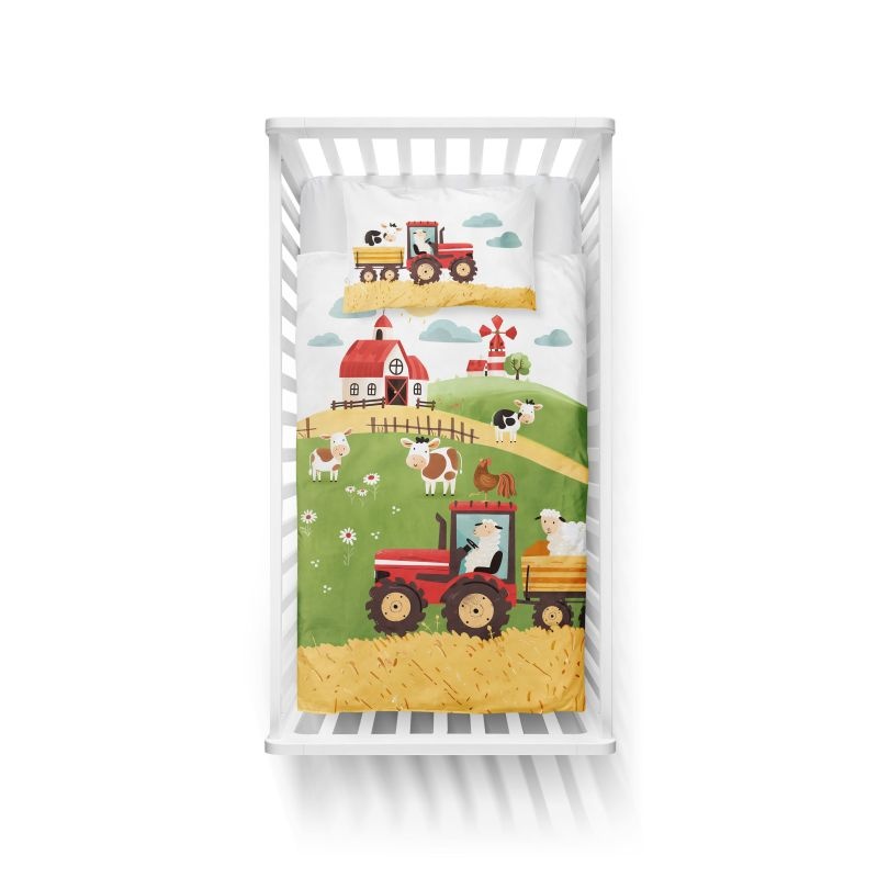 Obliečky do postieľky 3D Farma red 100/135, 40/60