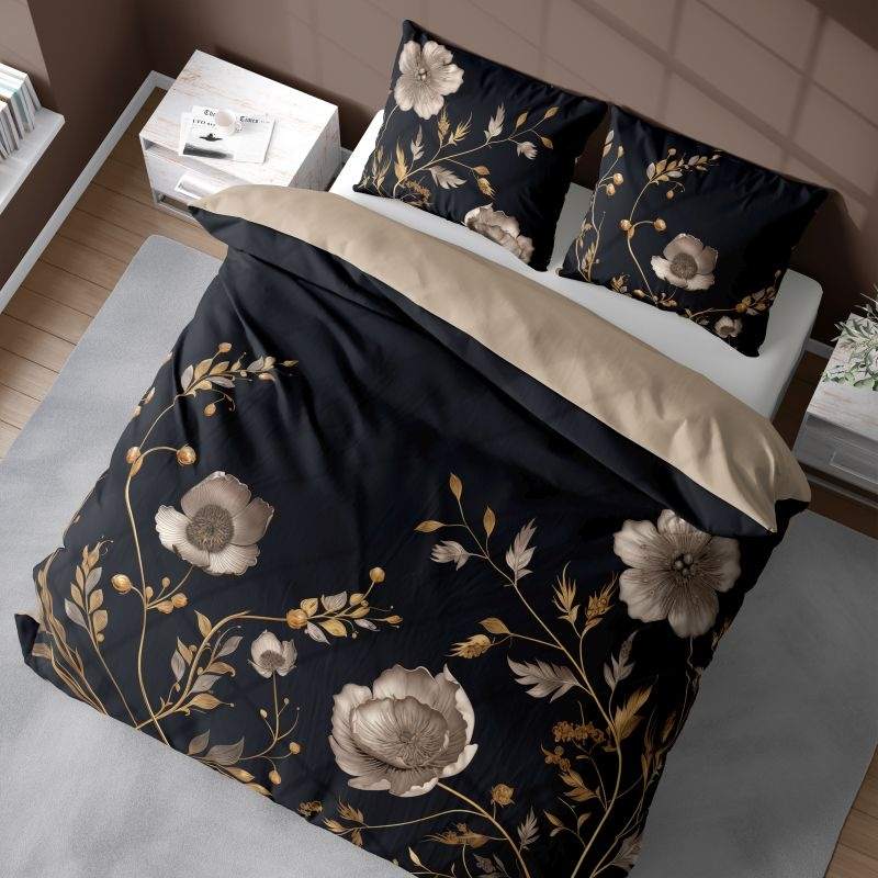 Úvod » Francúzske obliečky 3D Kvety na čiernom micro 220/200, 2x70/80