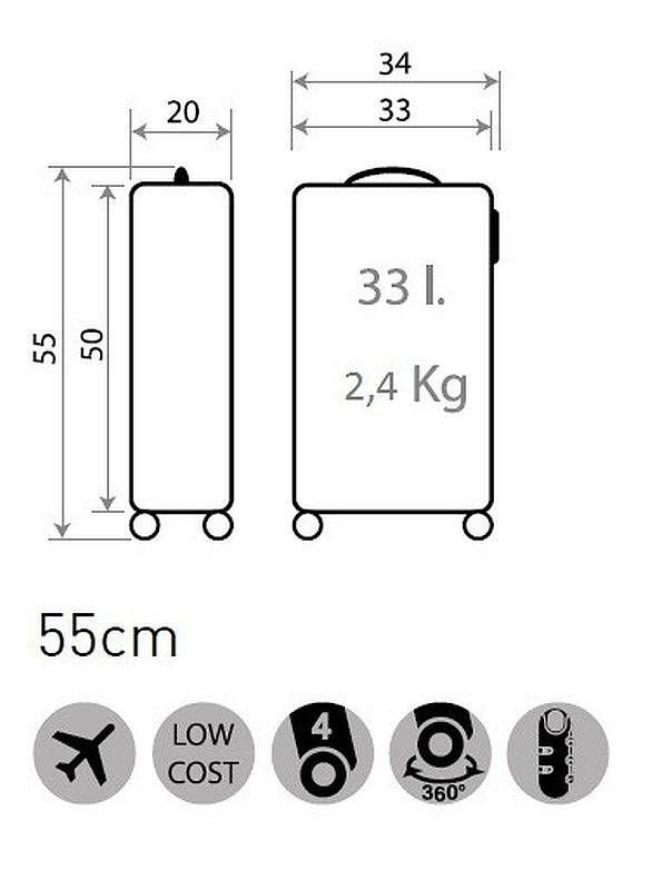 Cestovní kufr ABS je luxusní plastový kufr. Cestovní kufr 55 cm je vyroben z pevného ABS plastu a má 4 otočná kolečka, integrovaný zámek s číselným kódem. Rozměr kufru umožňuje použití též jako kabinové zavazadlo vhodné i pro nízkonákladové lety.