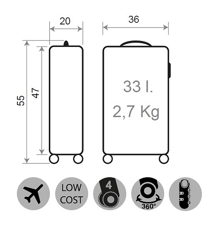 Cestovní kufr ABS je luxusní plastový kufr. Cestovní kufr 55 cm je vyroben z pevného ABS plastu a má 4 otočná kolečka, integrovaný zámek s číselným kódem. Rozměr kufru umožňuje použití též jako kabinové zavazadlo vhodné i pro nízkonákladové lety.