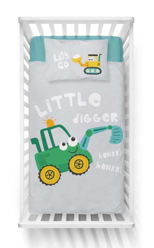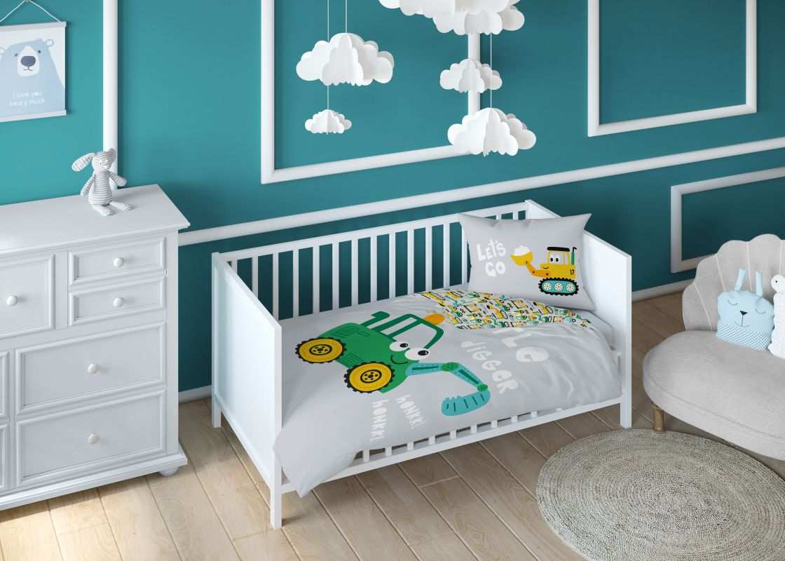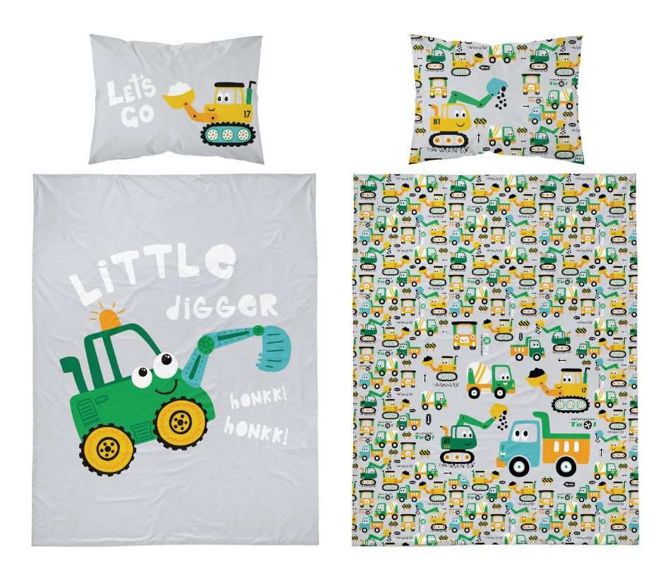 Detské obliečky do postieľky Bager zelený ponúkame v rozmere 100/135 cm, s vankúšom 40/60 cm. Bavlnené obliečky pre deti majú zapínanie na zips.