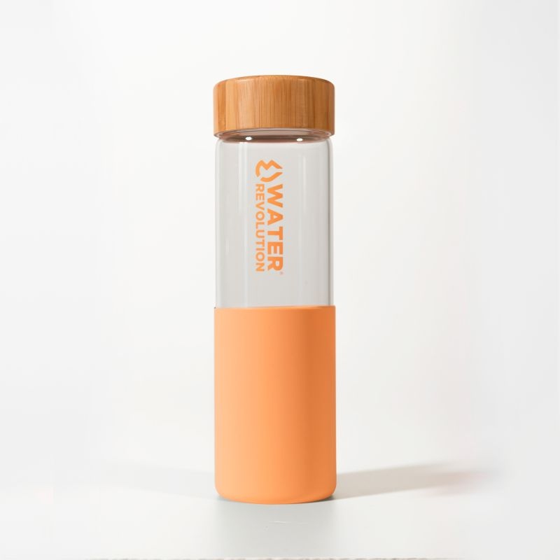 Water Revolution Sklenená fľaša na pitie v silikónovom obale púdrová 660 ml